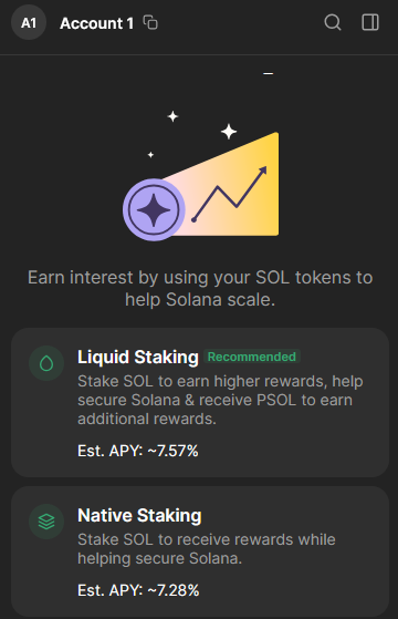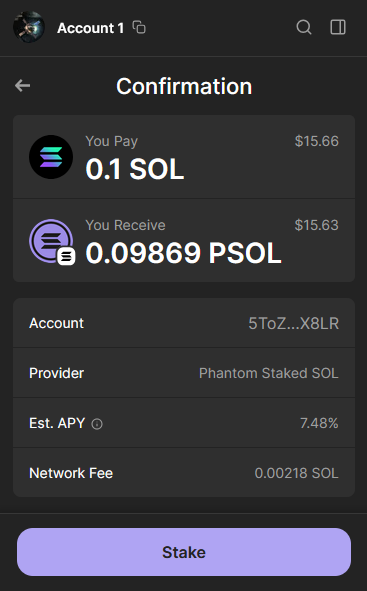 Liquid Staking też zostanie obsłużony w tym samym portfelu. Uwaga na opłaty sieciowe, ale w Solana są one bardzo niskie.