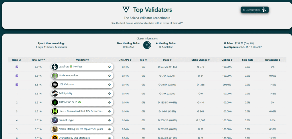 (na przykładzie https://topvalidators.app/):